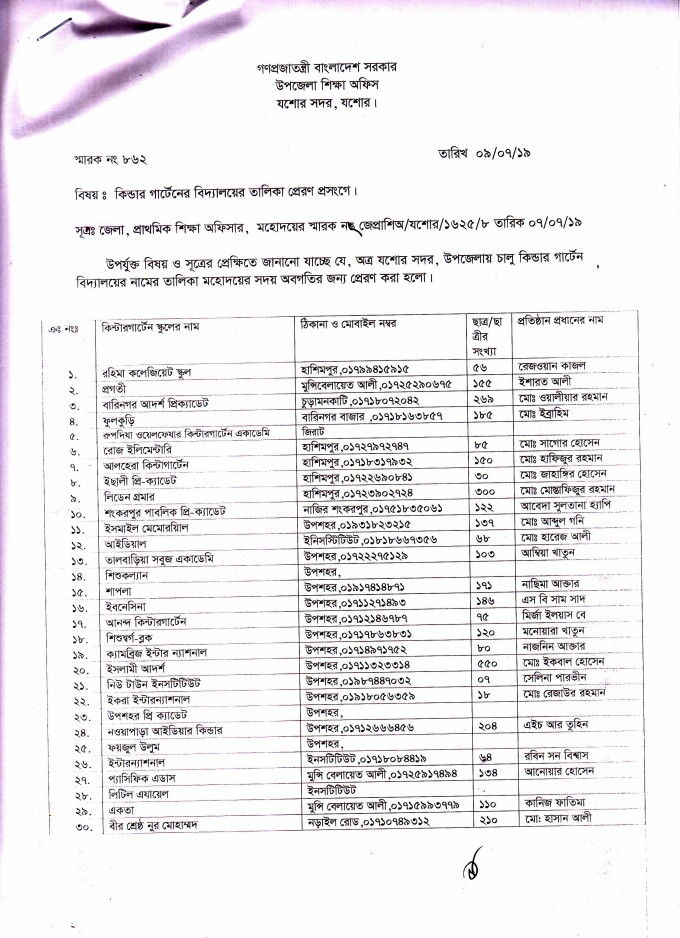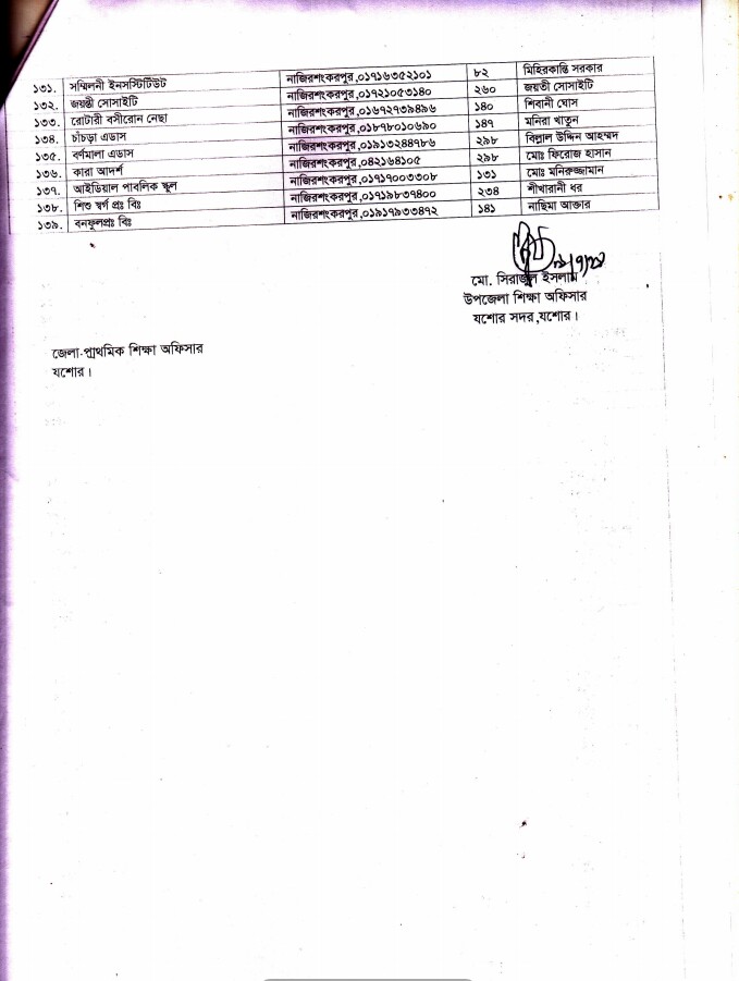 ১. পৌরসভার প্রধান শিক্ষকের তালিকা