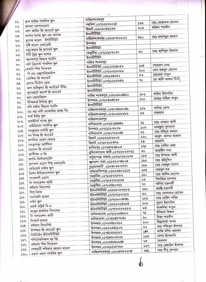 ২. পৌরসভার প্রধান শিক্ষকের তালিকা